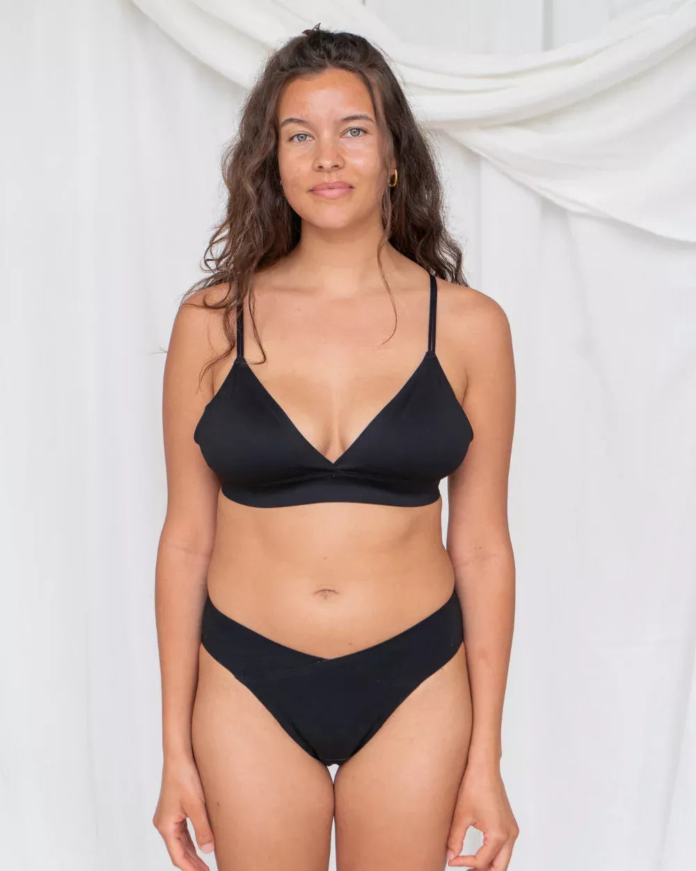 Het kruis van ons menstruatieondergoed is opgebouwd uit meerdere lagen van organisch materiaal. Een vocht opnemende katoen laag, een absorberende laag welke een goede vochtopname garandeert en een waterproof laag welke zorgt voor optimale bescherming.
